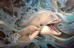 2013Dolfijn met haar jong. Naast moeder dolfijn gaat het jong vele avonturen tegemoed. Op naar volwassenheid.